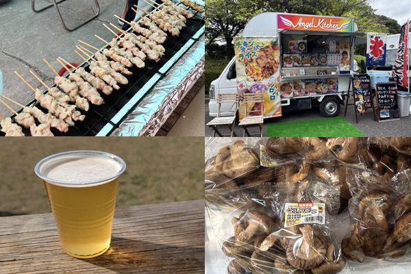■飲食ブース 習志野ソーセージ、焼きそば、からあげ、焼き鳥、フライドポテト、生ビール、クラフトビール、ペットボトル飲料、アイスコーヒー、酵素ドリンク、ポップコーン、焼き菓子 ■キッチンカー 習志野ソーセージ、タイ料理、ビーフオーバーラップ、ケバブ、ホットドッグ、ハロハロ、ビール、コーヒー ■おみやげ販売 群馬県上野村しいたけ・十石みそ(*)、ドリップパックコーヒー *群馬県上野村 習志野市は、2014年に群馬県上野村と「健康なまちづくりにおける相互応援に関する協定」を締結し、毎年さまざまな交流を行っています。 *一部店舗では現金のみのお取り扱いとなります。あらかじめご了承ください。 |