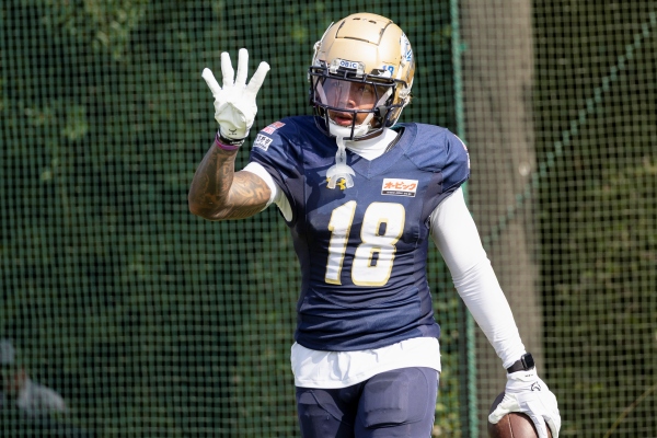 ▲最後は42ヤードのTDレシーブ。この日「4」TDのWR#18渡邊 |