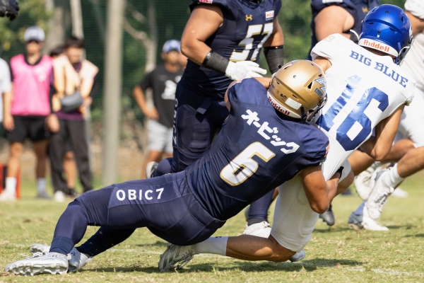 ▲ロスタックル、パスカットと活躍、LB#6高橋 |