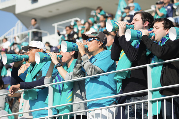 | スタジアム入口で、SEA-Cheerが皆さんをお出迎えします。ぜひSEA-Cheerから直接、爆声器を受け取ってください。 |