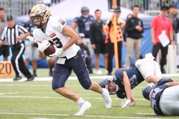 山中隆哉パスプレーで9回・128ヤード獲得・2TD。ボールを捕った後、1stダウン更新やエンドゾーンにボールをねじ込み、チームを勝利に導いた。