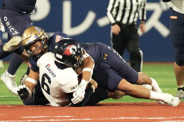 山田琳太郎5タックル、1ロスタックル、1パスカット。全体としてスクランブル(QBがボールを投げずに自ら走ること)に苦しんだ中、ひとり終始プレッシャーをかけ続けた。パシュートも素晴らしかった。