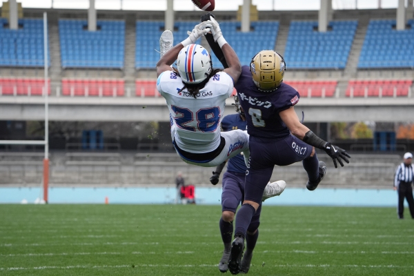 東京ガスにTDを許さず勝利。5年ぶりのライスボウル進出を決めました。ゲームMVPは最後にインターセプトを決めたDB#1小椋拓海。