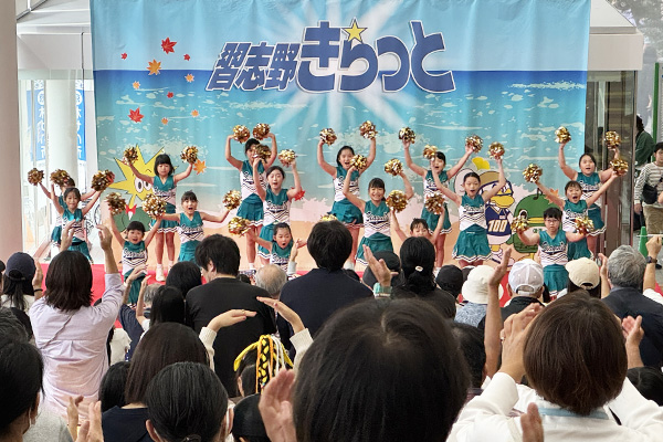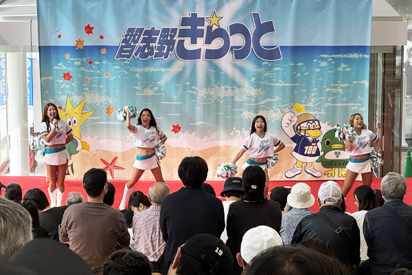 ▲市庁舎内ハミングステージでSEA-Cheerがパフォーマンスを披露。たくさんの方に注目していただき、いつも以上にダンスに熱が入りました |