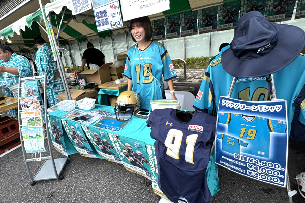 ▲ブースでは試合のPRに加えて、チケットやグッズの販売、防具の試着体験などを実施しました |