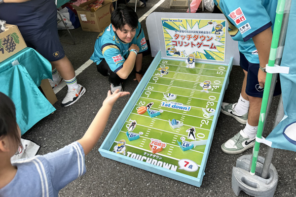 ▲「しーがるくんにパスを決めよう! タッチダウンコリントゲーム」。ボールを転がしてタッチダウンを狙い、得点に応じて景品をゲット! |