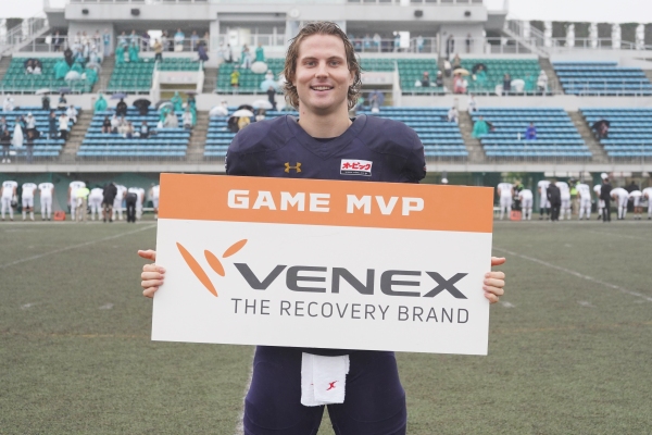 ▲Xリーグ選出ゲームMVP、X1 Super週間オフェンスMVP:QB#3ピアース・ホリー |