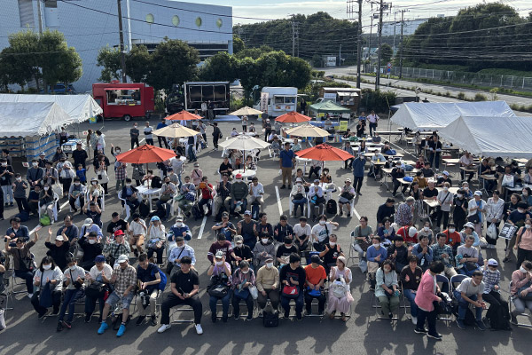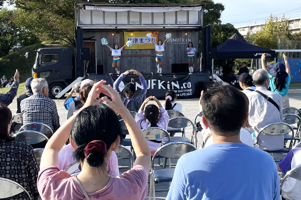 あかね園を後にしたSEA-Cheerは、そのまま次の会場の秋津小学校へ。今年で45回目を迎えた秋津まつりは、住民の皆さんが出店し、ステージに参加する、地元密着の一大イベントです。
