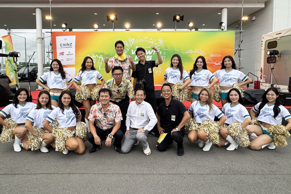 | ▲左から、TAMAE、YUI、 NANAO。SEA-Cheerを初めて知る人も多く、パフォーマンス後の記念撮影にはたくさんの方が参加してくれました |