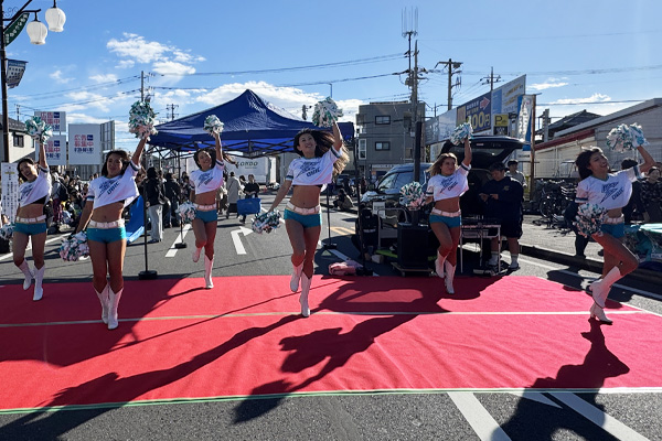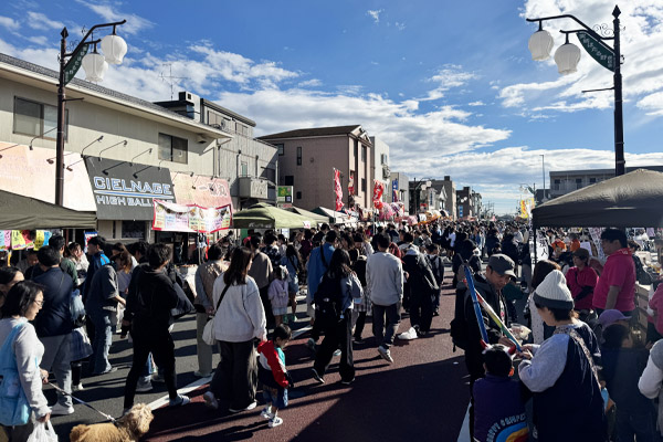 11/3(月祝)に開催されたこの祭りは、毎年1万人以上が訪れる地域最大級のイベントです。歩行者天国となった駅前通りには、200を超える模擬店やフリーマーケットが並び、地元の学校による音楽パレードも行われるなど、一日を通して大にぎわいでした。 イベントステージにも多くの方が集まり、SEA-Cheerのダンスパフォーマンスを楽しんでいってくれました。