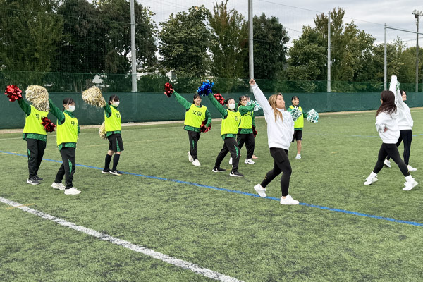 ▲SEA-Cheerと一緒にチアダンスの練習。音楽に合わせて踊る姿に、見ていた生徒から拍手が起こりました