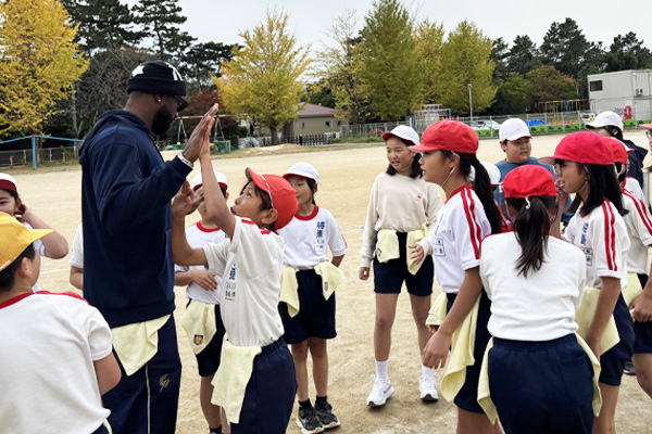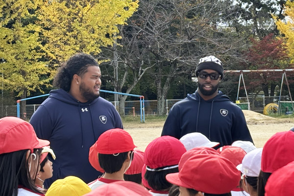 ▲最後に、選手からみんなにメッセージ。「スポーツや趣味を思いきり楽しんでほしい。でも勉強も大事だから頑張ってね」とデクスター選手。ジェイソン選手は「今日はみんな一生懸命だったので、どんなことでも全力で取り組めると思う。今後が楽しみです」と話していました