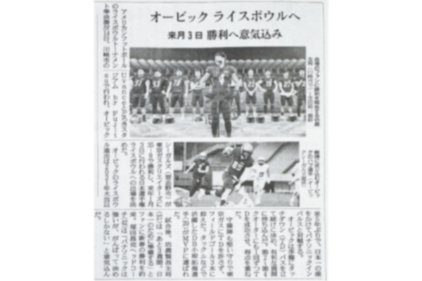 読売新聞千葉版に準決勝の取材記事が掲載されました2025年12月17日 12/17(水)付の読売新聞千葉版に、12/14(日)に行われた準決勝の取材記事が掲載されました。 記事では、攻守がかみ合った試合展開に加え、勝利後に塚田ヘッドコーチとDB#4坊農主将が語った、ライスボウルに向けた思いが紹介されています。 写真は、試合後、スタンドのファンに挨拶をする坊農主将と、この試合で11回のパスキャッチで119ヤード獲得・1タッチダウンの活躍を見せたTE#85ホールデン選手です。 *紙面画像は加工しています シェア:
