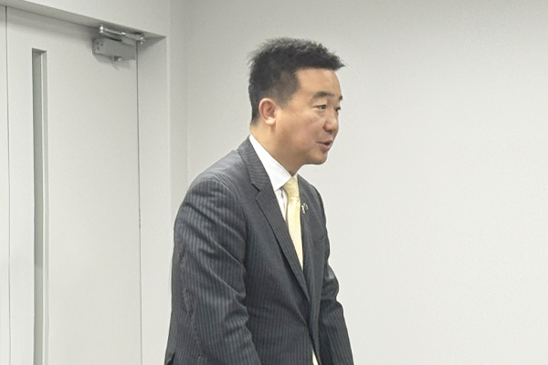▲宮本市長「社会人選手の皆さんは、日々のスケジュール調整や試合準備など、大変な苦労があると思います。そんな中、ここまで全勝で勝ち進んだことは本当に素晴らしい成果です。決勝も応援に行きます。ぜひ東京ドームで、私たちを感動に導いてください」