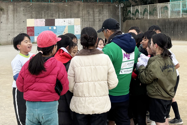 この日のアメフト先生は渡辺雄一さん(一般社団法人オービックシーガルズ習志野スポーツクラブ/チームOB)。児童たちはコーチの話をよく聞き、友だち同士で次にやることを確認しながら、集中して取り組んでくれました。その結果、実践に多くの時間を充てることができ、充実した授業となりました。