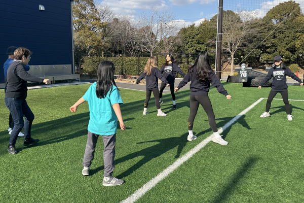 この日は、小さな子どもから大人まで7名がオービック習志野グラウンドに集まりました。参加者同士で「ダンス上手だね」「ポーズ決まってる!」と声をかけ合い、世代を超えて交流しました。体験後には「緊張したけど、みんなでやると楽しいですね」といううれしい声もいただきました。