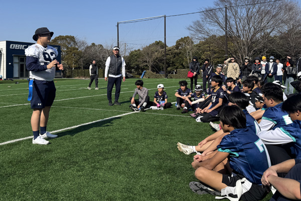 | ▲日本中学生アメリカンフットボール選手権2連覇を経験した中学生メンバーと |