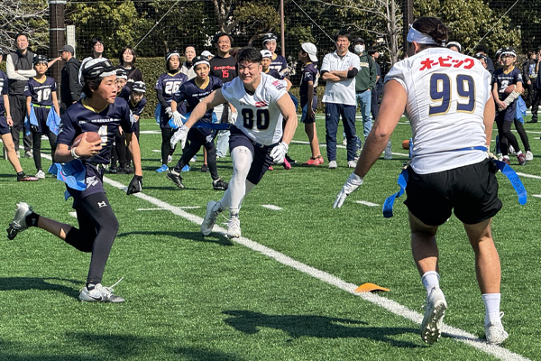 2/23(月祝)、オービックシーガルズジュニア(小学生フラッグフットボールチーム、中学生アメリカンフットボールチーム)を卒団するメンバーと、オービックシーガルズの選手・コーチ有志によるフラッグフットボールの記念試合を行いました。