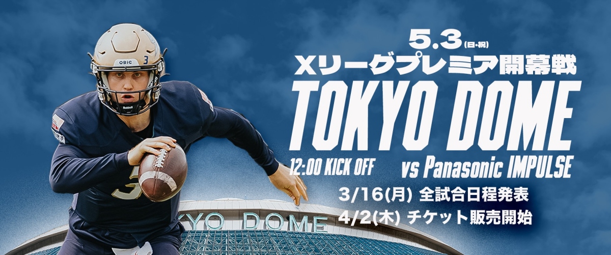 Xリーグプレミア開幕カード決定! オービック×パナソニック 5/3(日祝)@東京ドーム